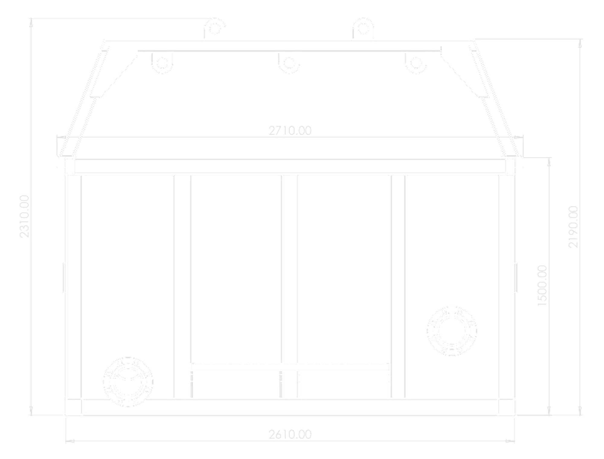 10,000 litre open top tank tank, with internal sloped floor for efficient draining and cleaning.