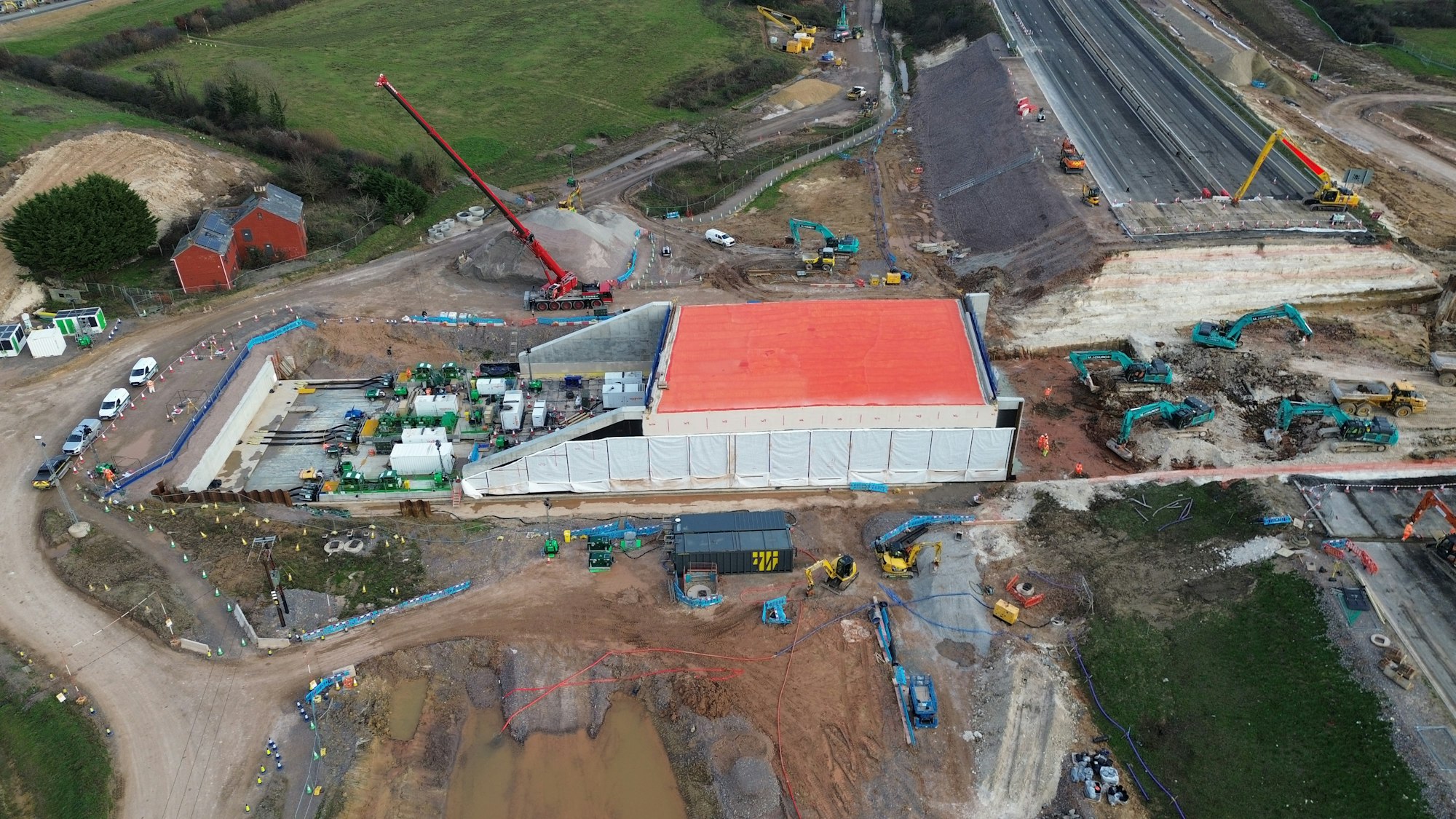 This complex project involved creating a new motorway underpass by excavating 24000m3 of material, and sliding a 60 metre long, 8,500-tonne concrete underpass into position with millimetre precision. The operation was followed by complex backfill and asphalt reinstatement activities during a short, planned motorway closure – avoiding months of lane closures and minimising disruption for road users.